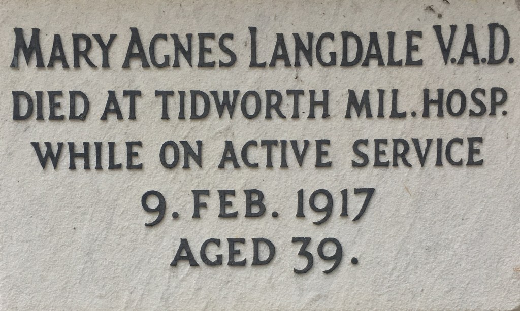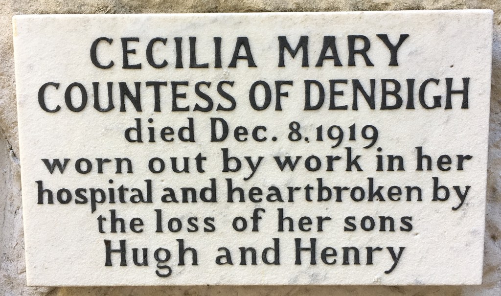 The Sisters began raising funds for the Memorial in August of 1917, when there were already over 180 lost sons, brothers and fathers – and in one case, a daughter – whose families donated between £1 and £5 (the equivalent of £55 -£275 in 2019) for a commemorative plaque. The plaques are made of marble and attached to a Portland stone background. The names, dates and dedications are etched in lead. The wording on each plaque, written by the families and friends of those commemorated, is more evocative and detailed than is usually found on Memorials of this period. Examples include ‘killed in action in Belgium whilst leading his men, aged 19 and 11 months’, and ‘worn out by work in her hospital and heartbroken by the loss of her sons Hugh and Henry’.